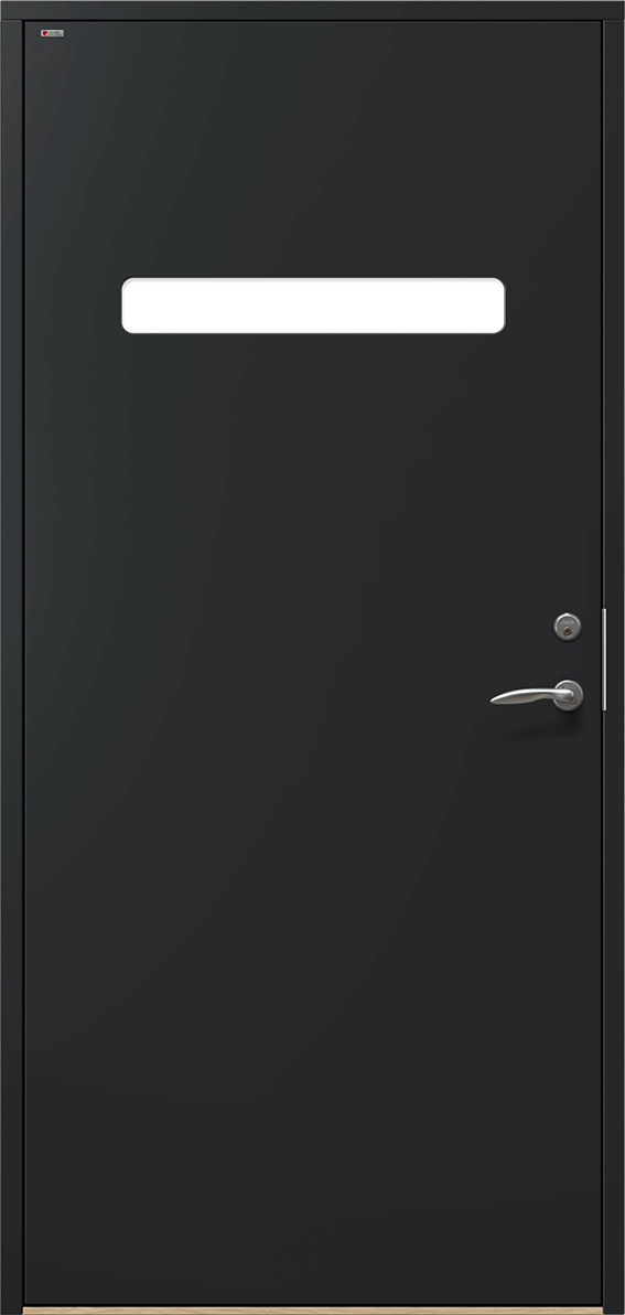 Ytterdörr i slät design, med dolda gångjärn och utsida utan utanpåliggande glaslist.